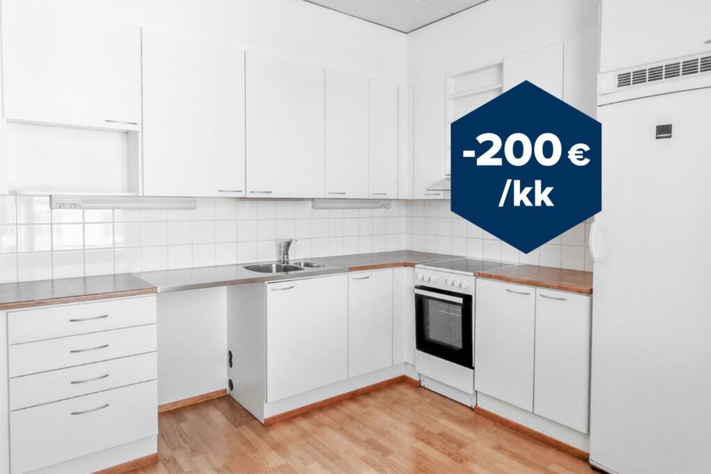Kampanjaetu uusille asiakkaille! Saat 200 € alennuksen tämän asunnon kuukausittaisesta vuokrasta vuoden 2026 loppuun asti. Etu koskee uusia sopimuksia, jotka allekirjoitetaan viimeistään 31.5.2026. Sopimuksen vähimmäiskesto 6kk. Alennus myönnetään kuukausilta, joilta vuokraa kertyy vähintään 15 päivältä. Lue tarkemmat kampanjaehdot.