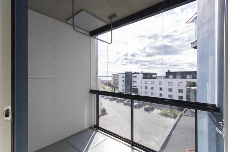 Tilava ylimmän kerroksen kolmio lasitetulla parvekkeella Kuopiossa