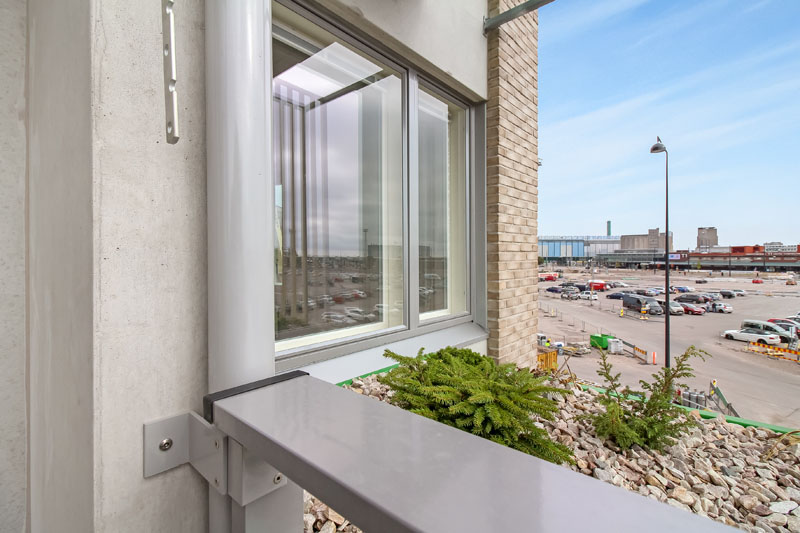 Ensimmäisen kerroksen asunnoissa on pienet parvekkeet sekä terassit asuntojen sisäänkäyntien yhteydessä. Muiden kerrosten asunnoissa on parvekkeet, joiden vieressä on istutuslaatikot julkisivun köynnös- ja havukasveille. Asuntojen kylpyhuoneissa on tilavaraukset pyykinpesukoneelle ja kuivausrummulle. Kylpyhuoneiden seinät ja lattiat on laatoitettu, muualla asunnoissa on puolestaan maalatut seinät ja laminaattilattiat. Keittiöissä on keraaminen liesi ja paikka astianpesukoneelle.