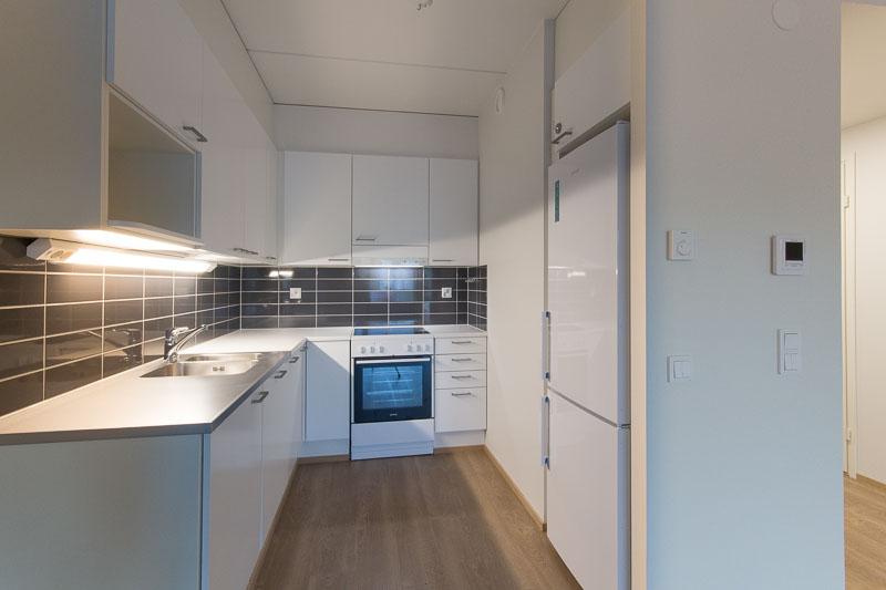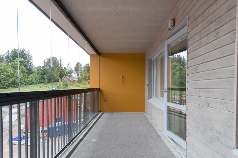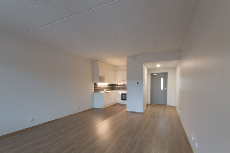 Valoisa ja avara ylimmän kerroksen kaksio tarjoaa modernia asumismukavuutta erinomaisella pohjaratkaisulla. Asunnossa on tilava olohuone, joka yhdistyy saumattomasti ruokailutilaan ja keittiöön, luoden avointa tunnelmaa. Suuret ikkunat tuovat runsaasti luonnonvaloa sisään, ja lasitettu parveke tarjoaa viihtyisän paikan nauttia aamukahvista tai iltahetkistä.