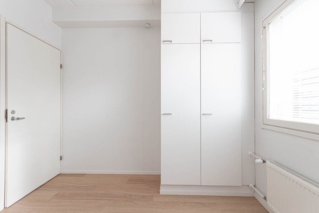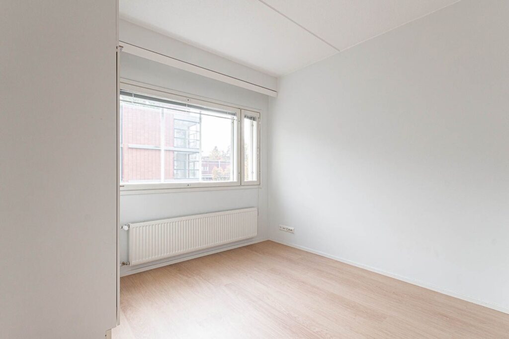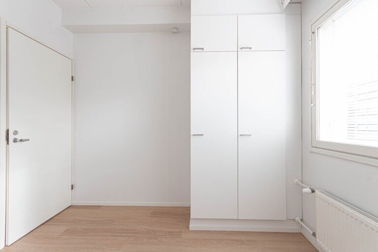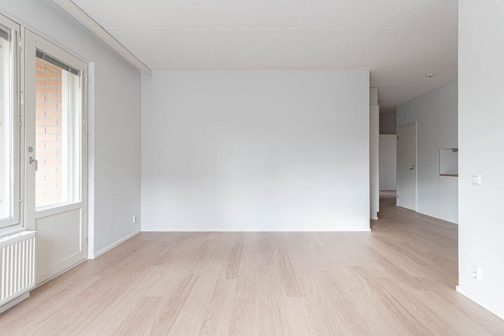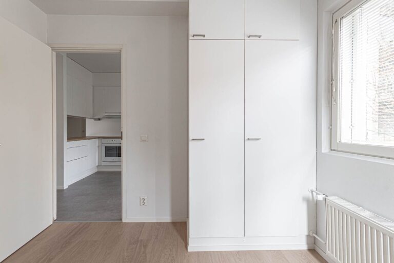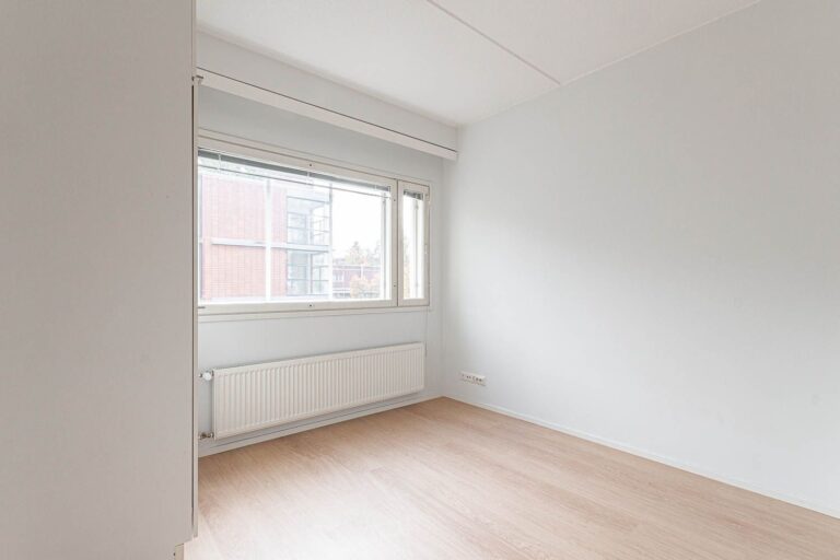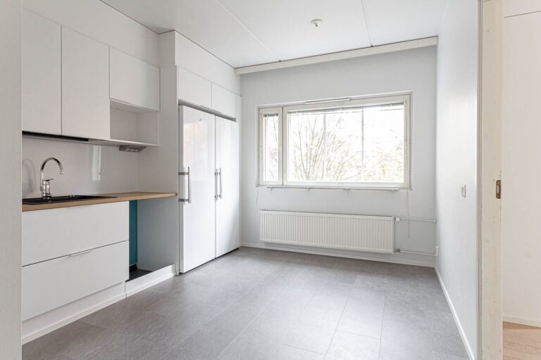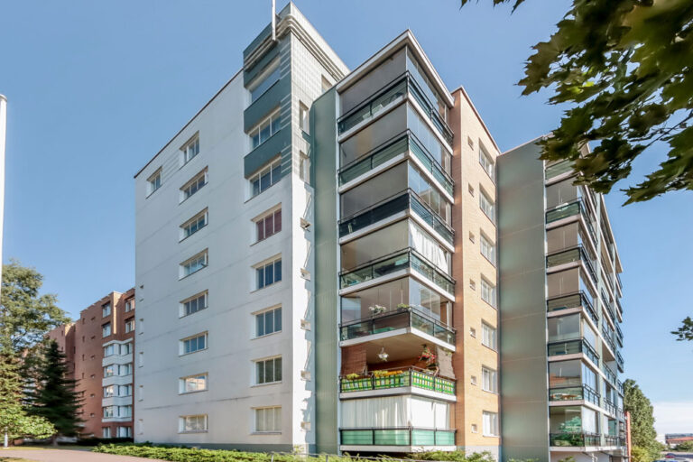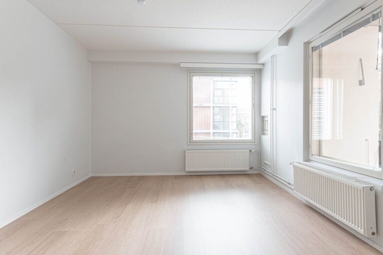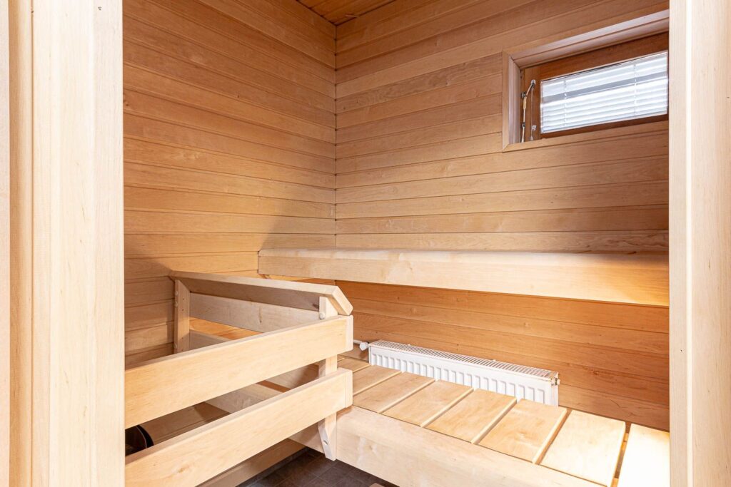 Ensimmäisen kerroksen kulma-asunto. Ikkunat ovat siis kahteen suuntaan, parveke lounaaseen. Asumismukavuutta lisää oma sauna.