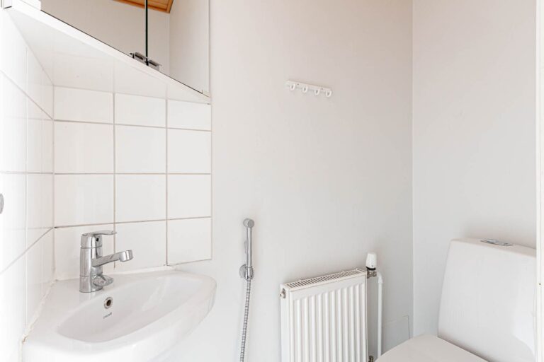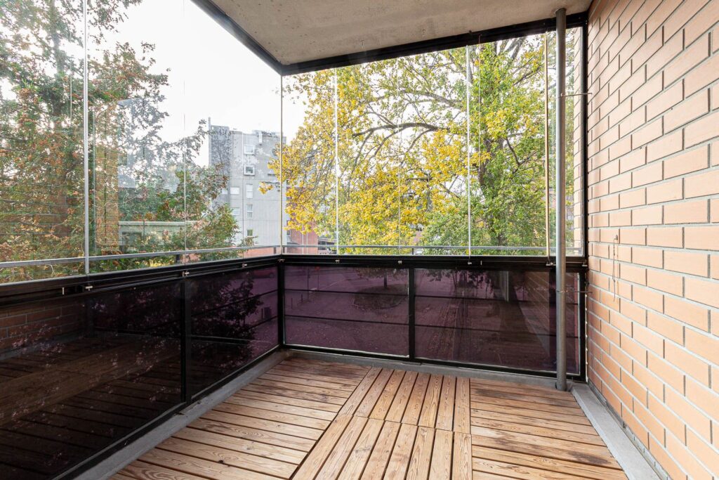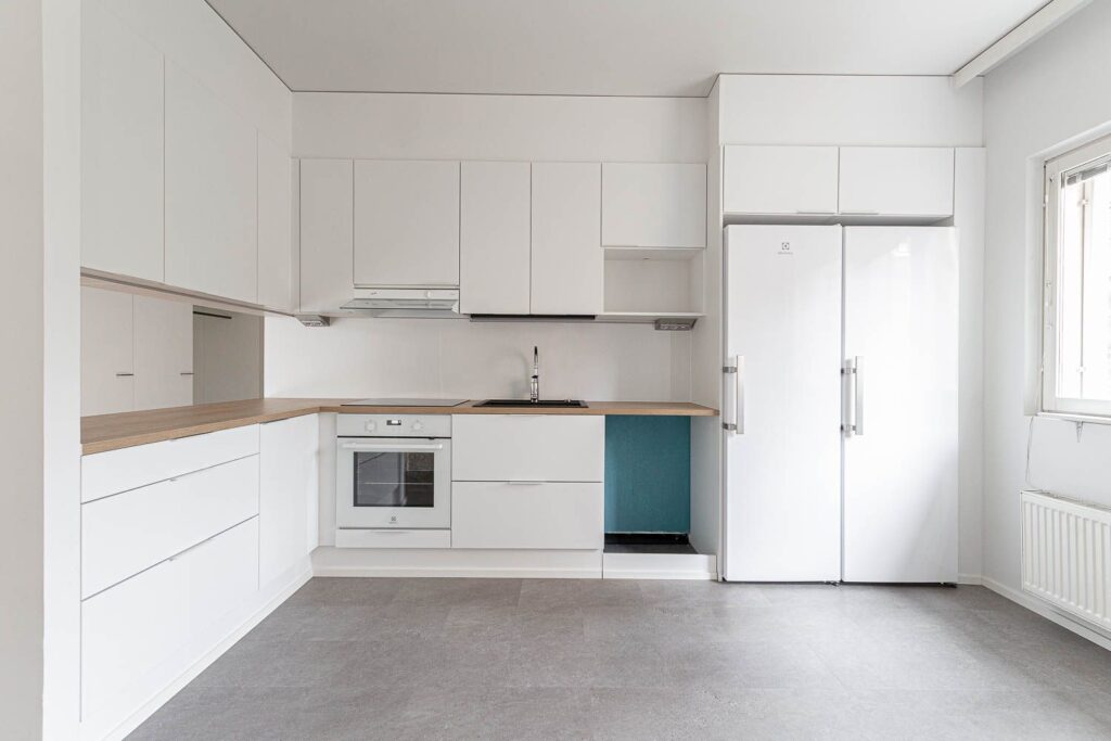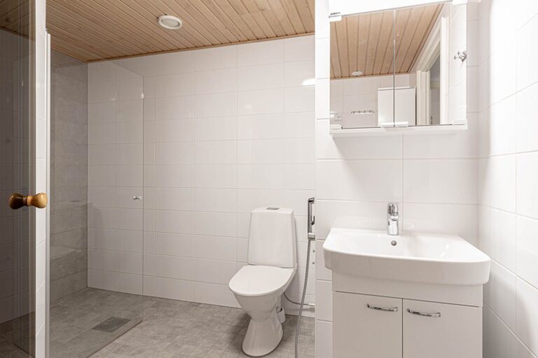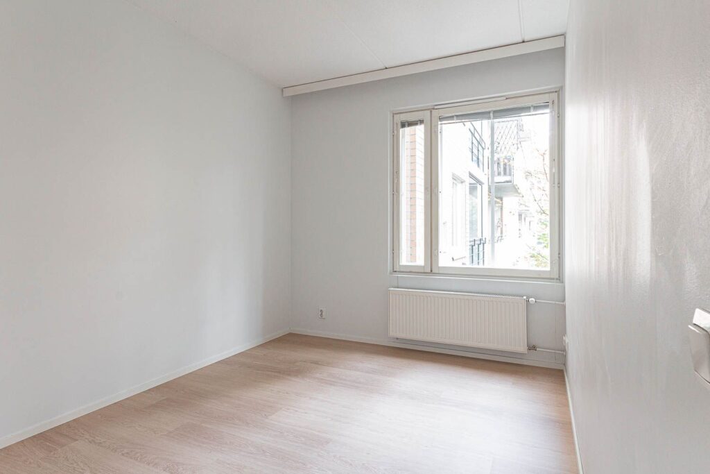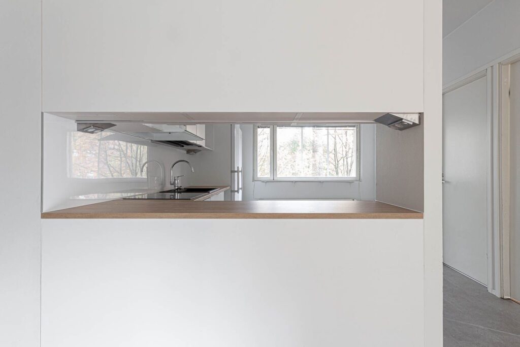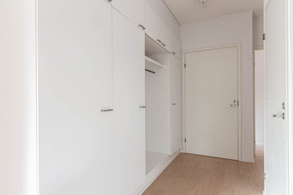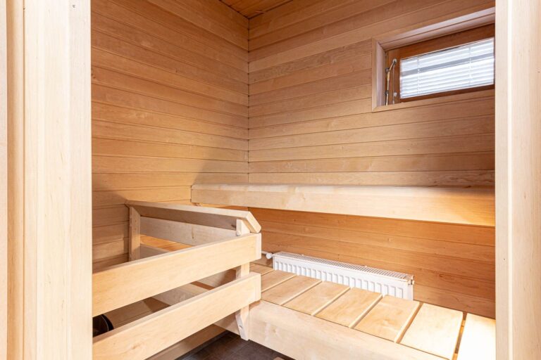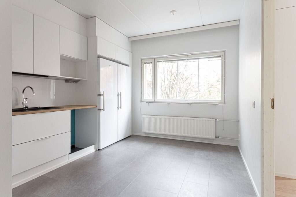 Ensimmäisen kerroksen kulma-asunto. Ikkunat ovat siis kahteen suuntaan, parveke lounaaseen. Asumismukavuutta lisää oma sauna.