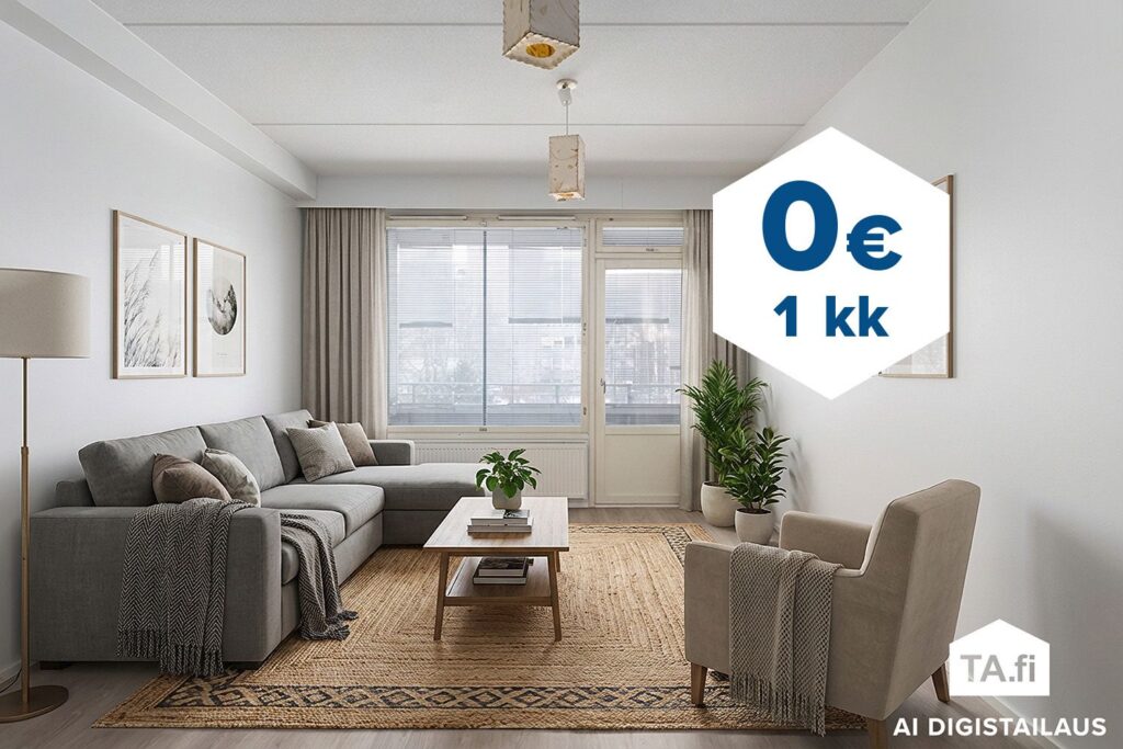 Tee sopimus nyt – saat ensimmäisen kuukauden käyttövastikkeen hintaan 0 €. Etu on voimassa 15.4.2026 saakka ja koskee uusia asiakkaita. Vesi- ja autopaikkamaksut normaalisti.