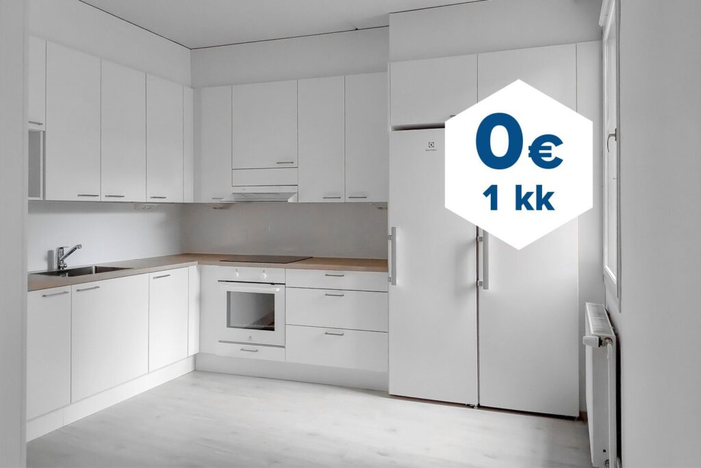 Tee sopimus nyt – saat ensimmäisen kuukauden käyttövastikkeen hintaan 0 €. Etu on voimassa 15.4.2026 saakka ja koskee uusia asiakkaita. Vesi- ja autopaikkamaksut normaalisti.