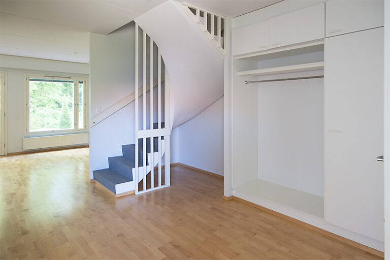 Vapautumassa tilava neliö perheystävällisestä pihapiiristä. Avarassa alakerrassa on koko asunnon levyinen olohuone. Huopapäällysteiset portaat vievät yläkertaan, jossa on tilavan päämakuuhuoneen lisäksi kaksi muuta makuuhuonetta ja kylpyhuone. Yhden makuuhuoneen yhteydessä on parveke. Asukkaiden yhteiskäytössä on tilava kerhohuone, jossa voi pitää vaikka lastenkutsuja.