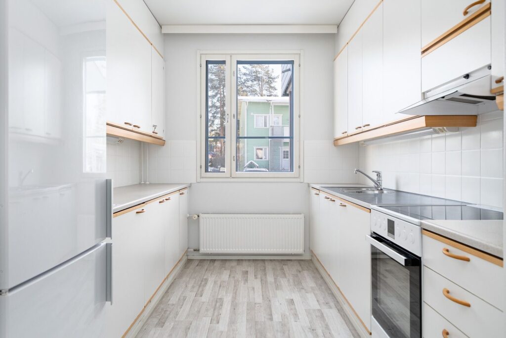 Asunnon sydän on avara olohuone, josta on käynti omalle terassille – täydellinen paikka aamukahvin tai -teen nauttimiseen! Keittiö on käytännöllisesti suunniteltu, ja siellä mahtuu kaksikin kokkaamaan samaan aikaan.