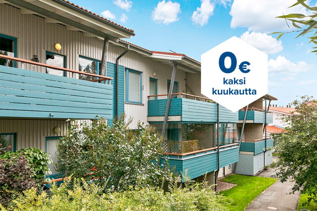 Tee sopimus nyt – saat kahden ensimmäisen kuukauden käyttövastikkeen hintaan 0 € ja vakuusmaksun 250 €. Edut ovat voimassa 15.4.2026 saakka ja koskevat vain vapaita asuntoja ja uusia asiakkaita. Vesi- ja autopaikkamaksut normaalisti. Edellyttää 12 kuukauden asumista.