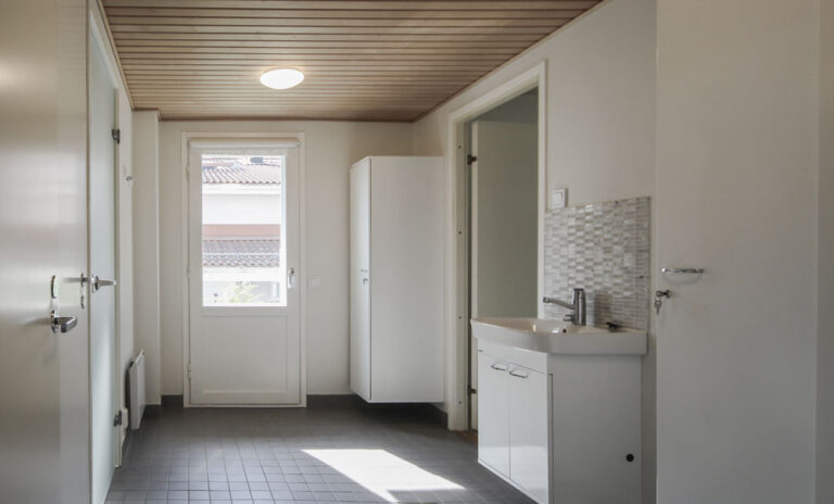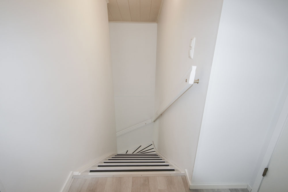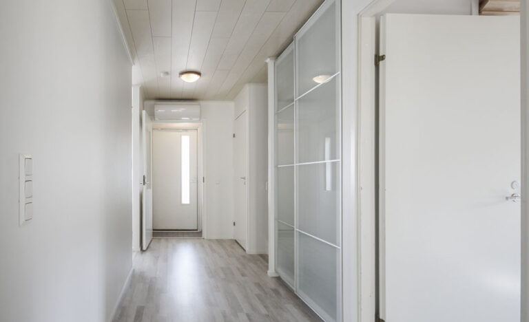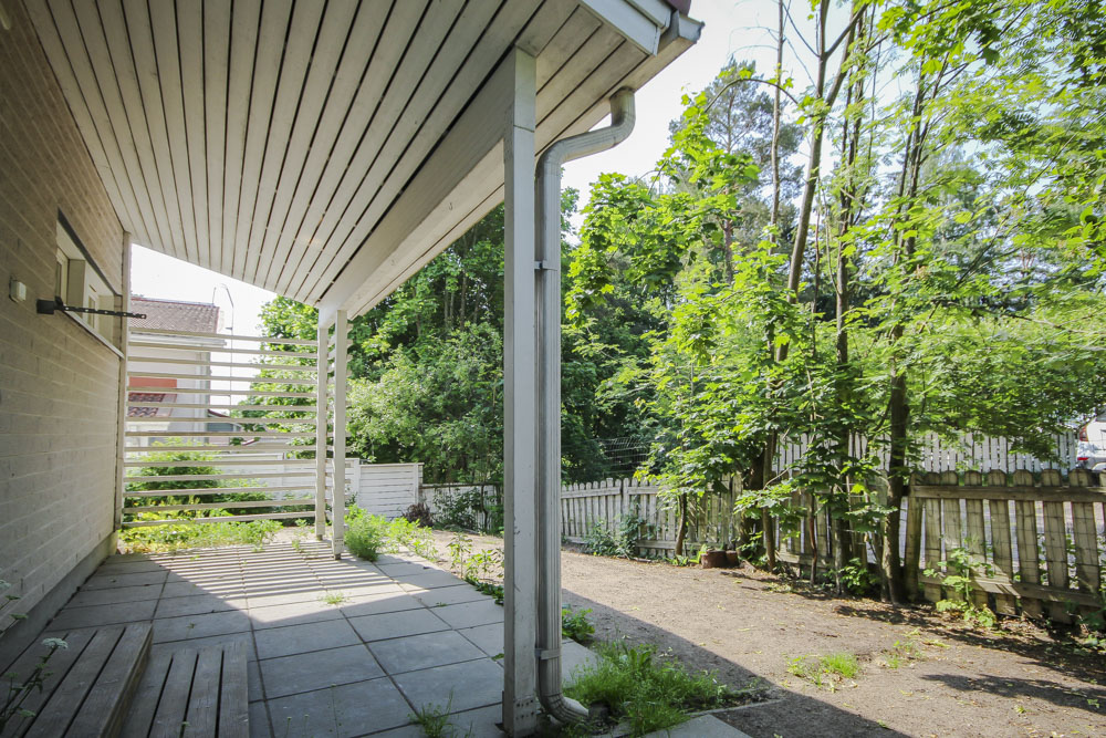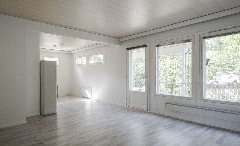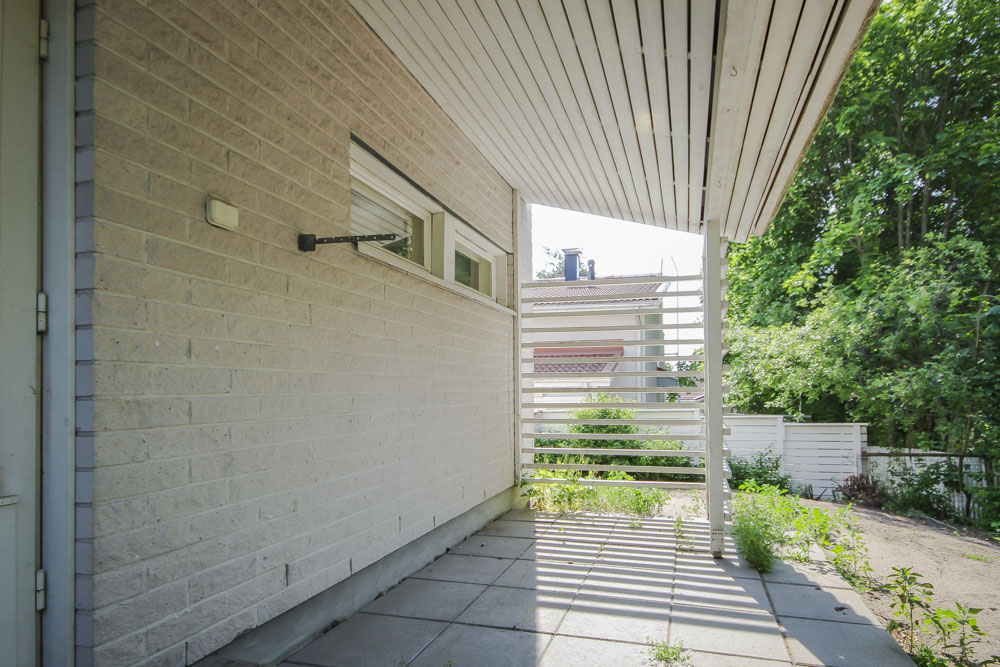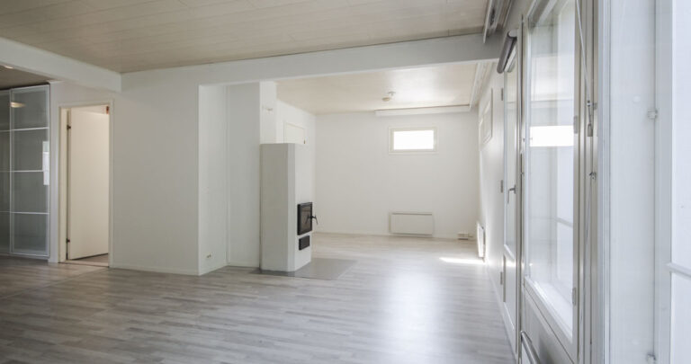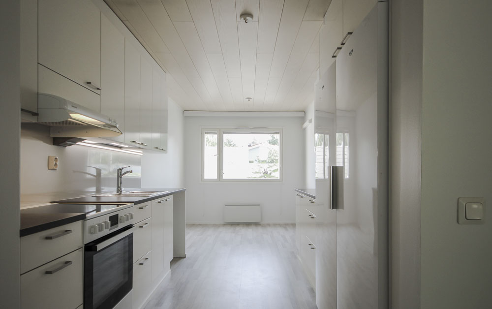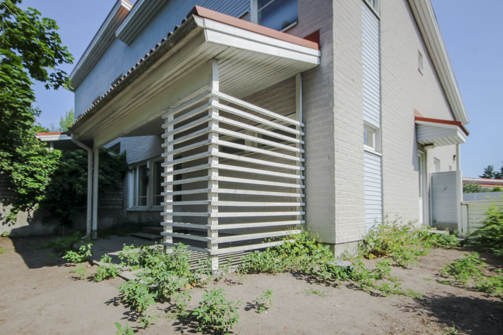 Tilava kaksikerroksinen paritaloasunto, jossa on ikkunoita kolmeen ilmansuuntaan. Makuuhuoneet ovat omassa rauhassaan yläkerrassa. Alakerrassa avoin ruokailutilan, keittiön, olohuoneen ja askarteluhuoneen muodostama tila. Asunnon valokuvat ovat vastaavanlaisen asunnon valokuvia.