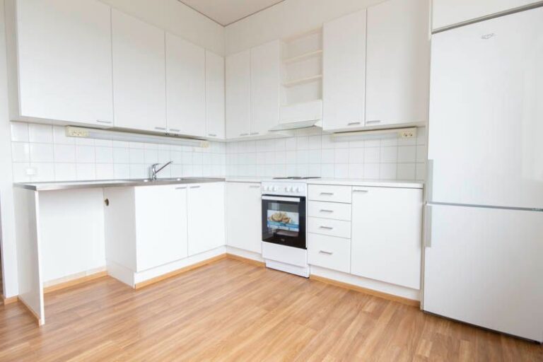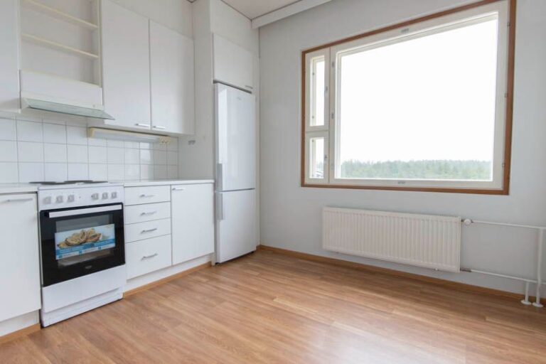 Asunnossa on selkeä ja toimiva pohjaratkaisu. Tilava olohuone toimii kodin keskipisteenä, ja siitä on kulku parvekkeelle, joka tarjoaa lisätilaa oleskeluun. Keittiö on erillinen mutta olohuoneeseen avautuva, ja sen yhteydessä on hyvin tilaa ruokailulle. Makuuhuone sijoittuu olohuoneen viereen. Kuvat kohteen toisesta vastaavasta asunnosta.