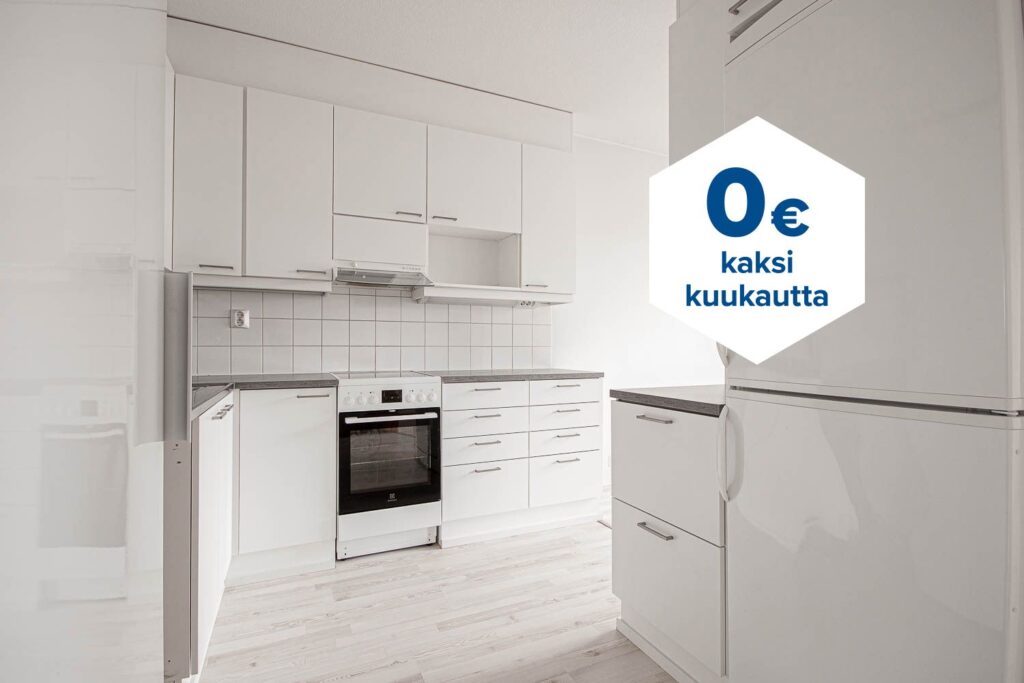 Tee sopimus nyt – saat kahden ensimmäisen kuukauden käyttövastikkeen hintaan 0 € ja vakuusmaksun 250 €. Edut ovat voimassa 15.4.2026 saakka ja koskevat vain uusia asiakkaita. Vesi- ja autopaikkamaksut normaalisti. Edellyttää 12 kuukauden asumista.