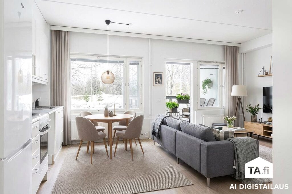 Tämä koti tarjoaa selkeän ja tehokkaan pohjaratkaisun, jossa tupakeittiö ja olohuone muodostavat viihtyisän, yhtenäisen tilan. Oma sauna lisää arjen mukavuutta ja lasitettu parveke (muutostyö vuodelta 2020) tuo asumiseen miellyttävää lisätilaa ympäri vuoden.