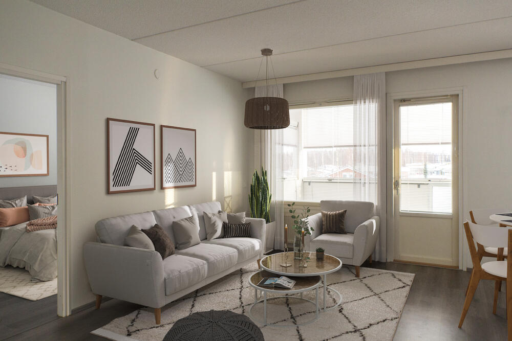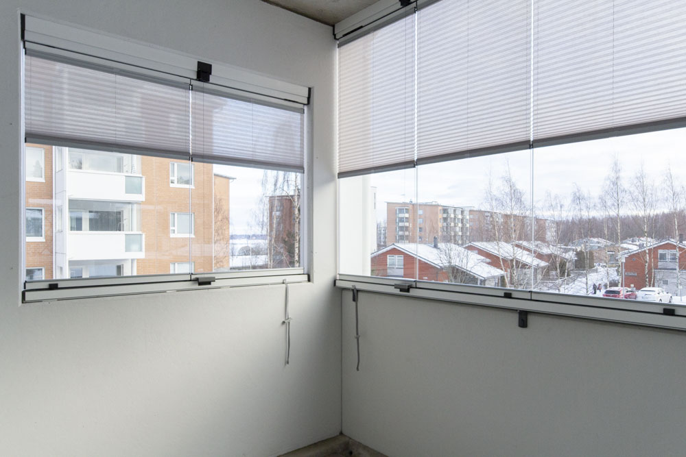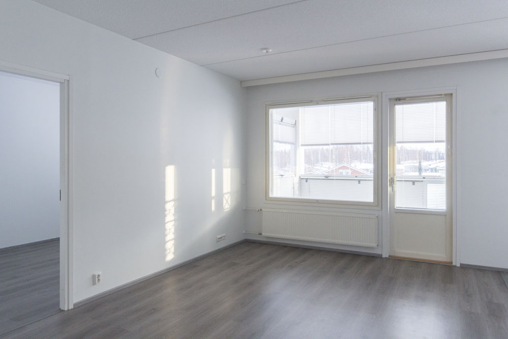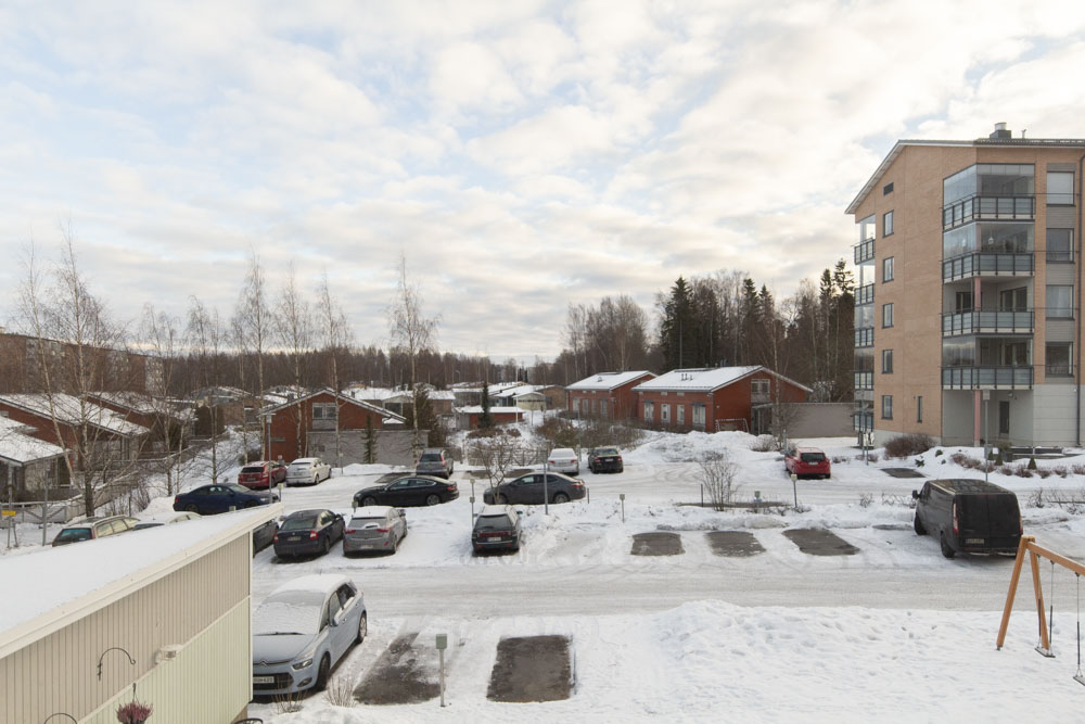 2/5 kerroksen valoisa kolmio. Asunnossa on avara yhtenäinen keittiö ja olohuone, josta kulku tilavalle itään suuntautuvalle lasitetulle parvekkeelle. Ikkunat kahteen ilmansuuntaan. Uudet laminaattilattiat. Asumisviihtyisyyttä tuovat vaatehuone ja oma sauna. Tälle asunnolle on vuokrattavissa lämmityspistokkeellinen autopaikka. Asunto on vapaa ja vastaanotto sovittavissa.