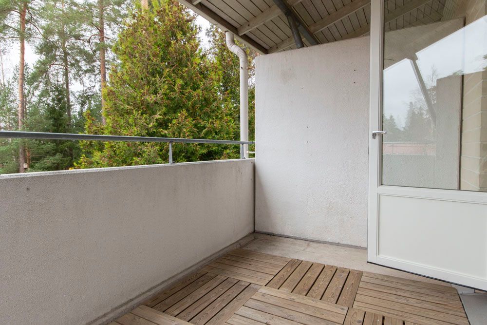 Kompakti pikku koti kerrostalon toisessa kerroksessa. Yhtenäinen keittiö ja olohuone josta käynti tilavalle parvekkeelle. Erillisessä makuuhuoneessa myös pieni vaatehuone. Asunnossa oma sauna.