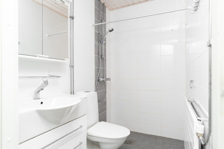 Kolme makuuhuonetta sijaitsee yläkerrassa, jossa on oma suihkullinen wc.
