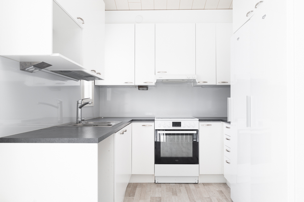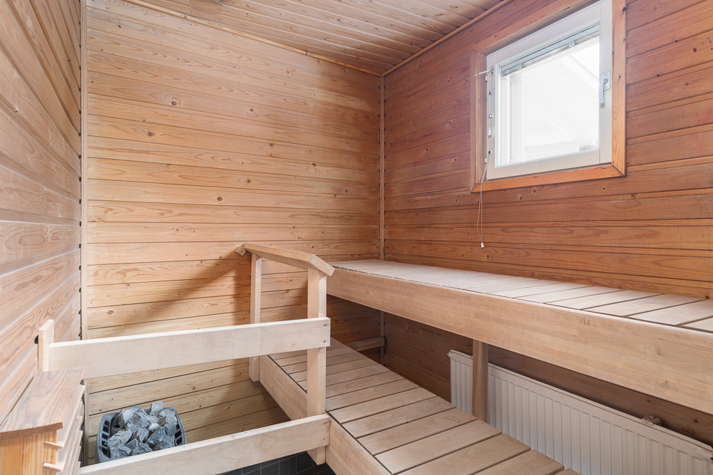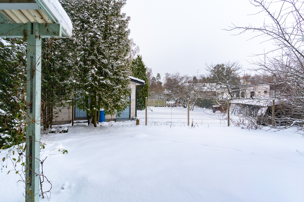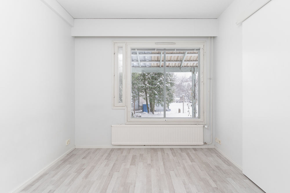 Sisääntulokerroksessa on keittiö ja idyllinen ruokailutila sekä saunaosasto, jonka yhteydessä on kodinhoitohuone. Alakerrassa on valoisa olohuone, josta käynti isolle omalle pihalle ja yksi makuuhuone tilavalla vaatehuoneella. Asunnossa on tehty kylpyhuone- ja keittiöremontti. Asunnolle on autopaikka varattavissa.