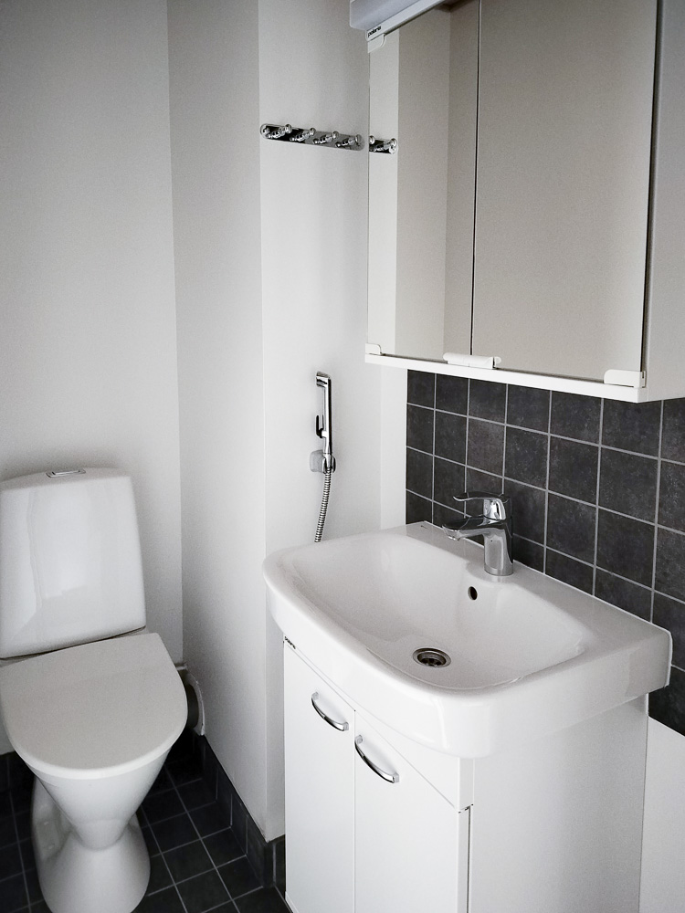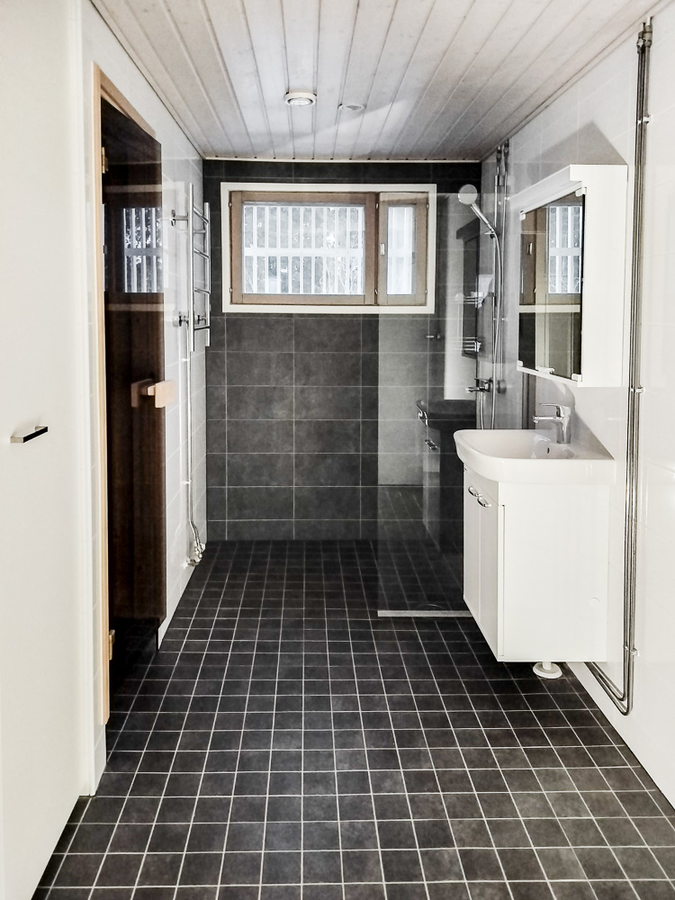 Kylpyhuone ja sauna on varustettu ikkunoilla, jotka tuovat tiloihin luonnonvaloa ja raikkaan tunnelman. Erillinen wc lisää asumismukavuutta. Sisäänkäynnin yhteydessä sijaitseva oma, suojaisa ”parveke” tarjoaa yksityisyyttä ja mahdollisuuden nauttia ulkoilmasta omassa rauhassa.