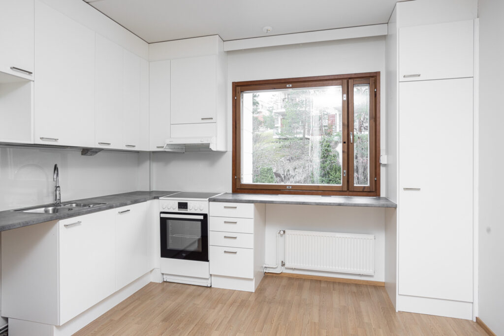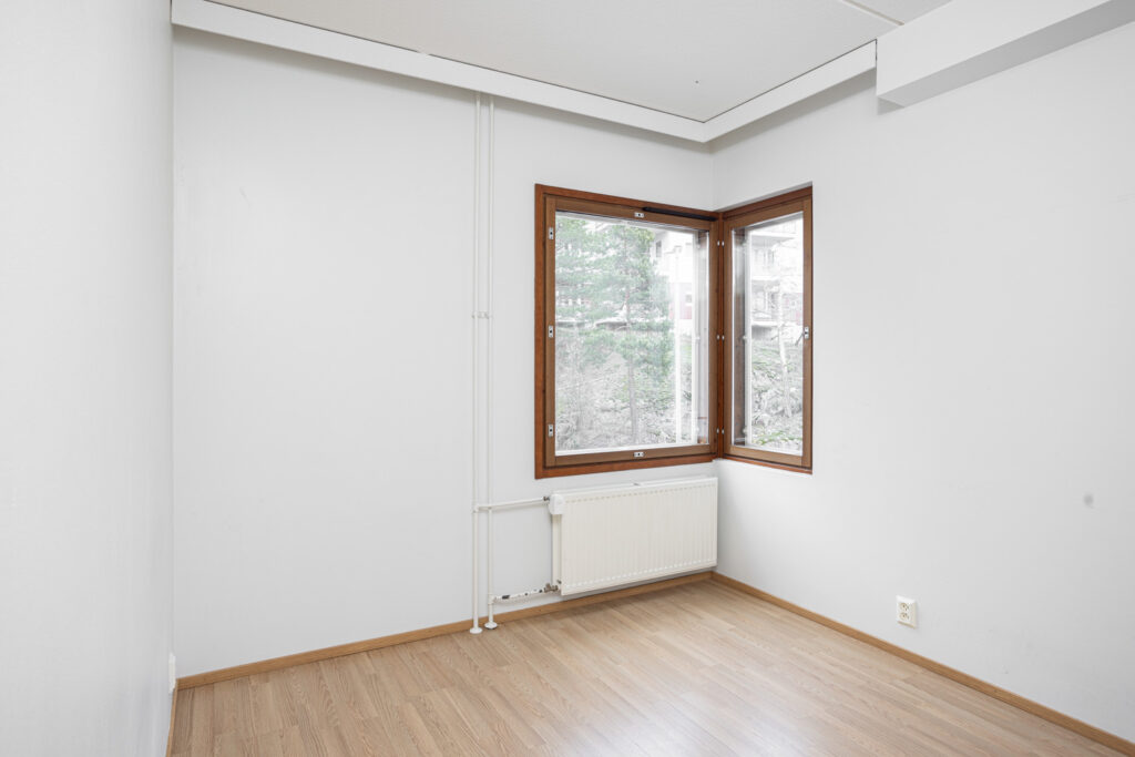 Toisen kerroksen läpitalon asunto, jossa on ikkunoita kahteen ilmansuuntaan. Tämän kolmion makuuhuoneissa sekä eteisessä on reilusti säilytystilaa. Kylpyhuoneessa varaus pesukoneelle sekä oma sauna tuomassa luksusta arkeen. Asunnossa myös erillinen wc. Olohuoneesta käynti omalle parvekkeelle. Ison Omenan palvelut ja metro löytyvät lähietäisyydeltä.