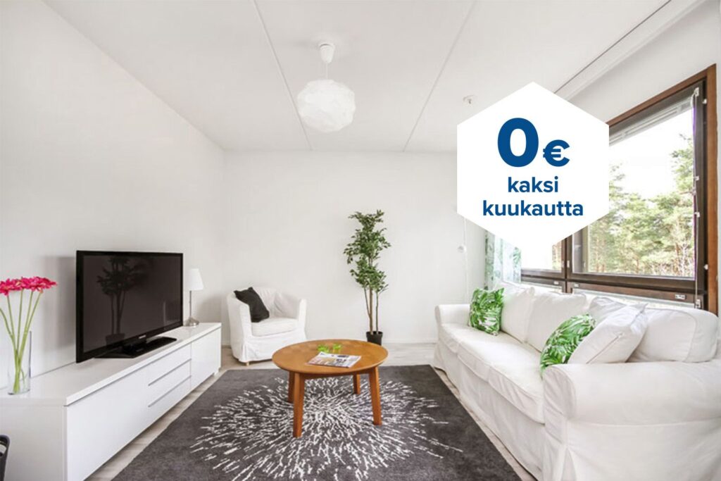 Tee sopimus nyt – saat kahden ensimmäisen kuukauden käyttövastikkeen hintaan 0 € ja vakuusmaksun 250 €. Edut ovat voimassa 15.4.2026 saakka ja koskevat vain uusia asiakkaita. Vesi- ja autopaikkamaksut normaalisti. Edellyttää 12 kuukauden asumista.