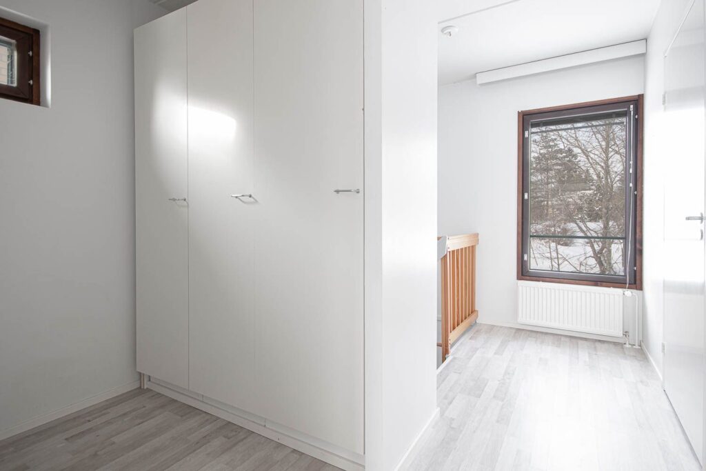 Yläkerrassa sijaitsevat kolme makuuhuonetta, jotka tarjoavat joustavat mahdollisuudet perheelle tai etätyöhön. Kerroksen oma WC tuo arkeen lisää mukavuutta. Selkeä käytävä jakaa tilat loogisesti ja tekee kokonaisuudesta helposti kalustettavan.