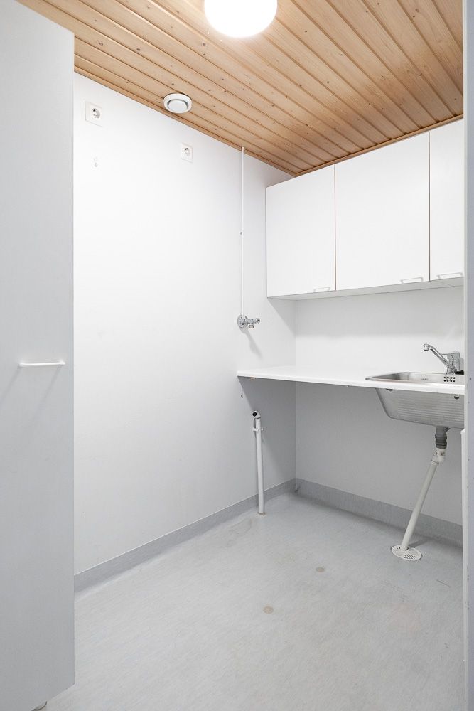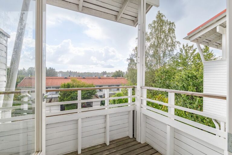 Kohteen etuna on viihtyisä taloyhtiö ja luonnonläheinen sijainti. Tilaratkaisut on myös mietitty käytännönläheisiksi. Yläkerrassa sijaitsevat kolme makuhuonetta, joista päämakuuhuoneesta on käynti parvekkeelle. Myös sauna ja pesuhuone ovat yläkerrassa. Alakerrasta löytyy kodinhoitohuone ja erillis-wc. Rappusten alla on varastohuone. Keittiön ja olohuoneen välillä on puoliseinä, jonka viereen voi kätevästi sijoittaa ruokailupöydän keittiön puolelle. Liesi on keraaminen. Olohuoneesta on pääsy omalle takapihalle, joka on käytännössä kokonaan terassia. Asunnon yläkerrassa on harmaa laminaattilattia, alakerran laminaatti on hieman vaaleampi sävyltään. Kokonaisuus on valoisa ja harmoninen.
