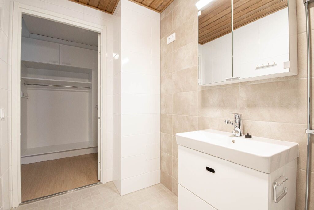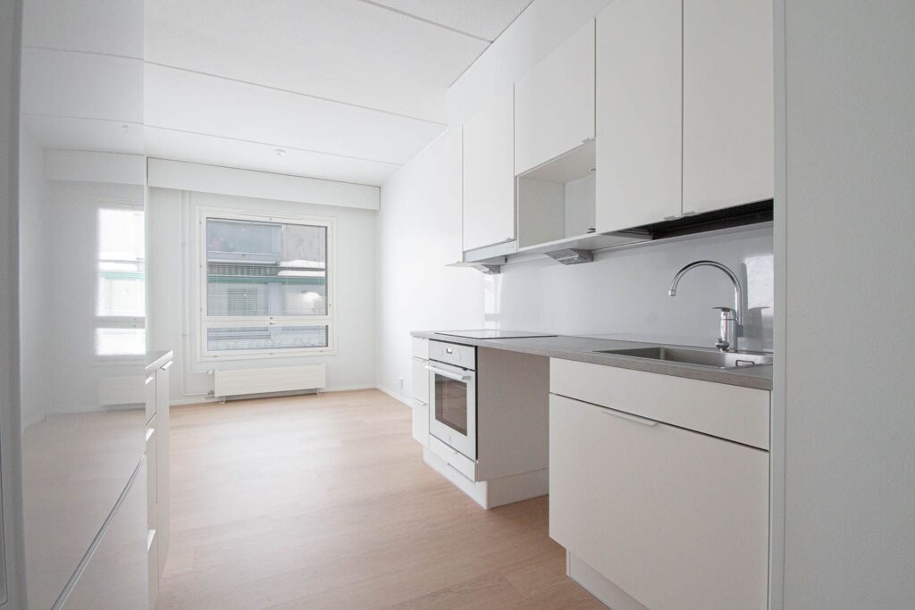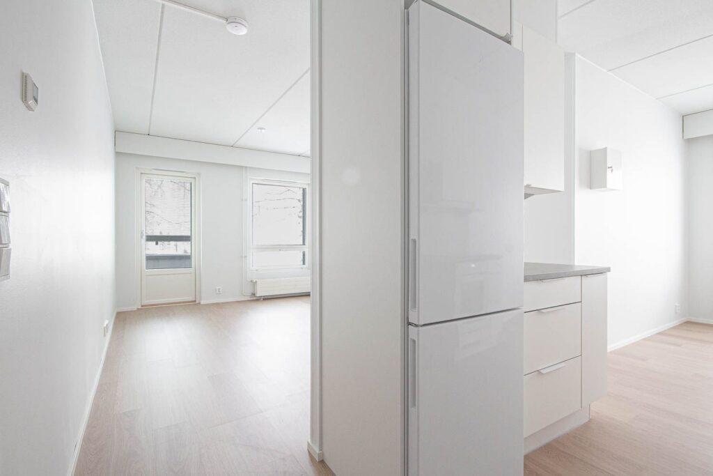 Tässä kodissa eteisestä avautuvat heti kodin sydän; keittiö ja ruokailutila. Olohuone on keittiön välittömässä yhteydessä, mistä on käynti omalle tilavahkolle lasitetulle parvekkeelle. Keittiön varustukseen kuuluu induktioliesi, jää-pakastinkaappi sekä tilavaraus astianpesukoneelle (60 cm) ja mikroaaltouunille. Eteisessä on naulakkokaappi, siivous- ja pyykkikomero ja käynti pesuhuoneeseen. Pesuhuoneessa on tilavaraus pyykinpesukoneelle ja suihku ja wc-varustus.