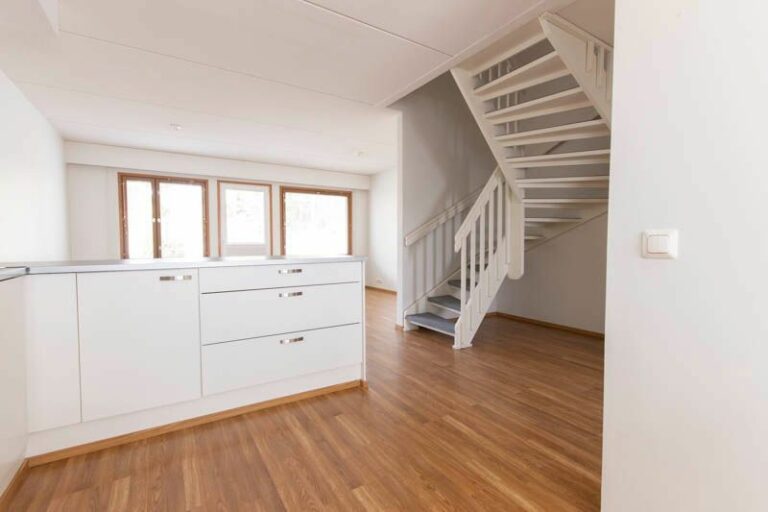Tilavassa kylpyhuoneessa on oma sauna ja tilaa pesukoneelle. Kylpyhuone ja makuuhuoneet sijaitsevat yläkerrassa. Saarekkeellinen keittiö, joka yhdistyy luontevasti olohuoneeseen. Tämä koti tarjoaa puitteet rauhalliseen ja huolettomaan asumiseen luonnon helmassa.