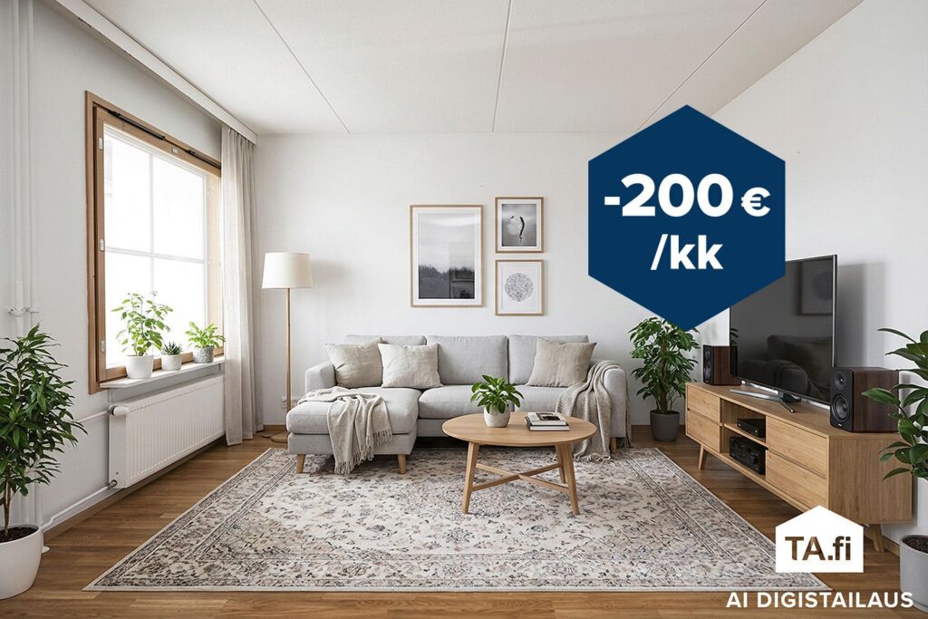 Kampanjaetu uusille asiakkaille! Saat 200 € alennuksen tämän asunnon kuukausittaisesta käyttövastikkeesta vuoden 2026 loppuun asti. Etu koskee uusia sopimuksia, jotka allekirjoitetaan viimeistään 31.5.2026. Alennus myönnetään kuukausilta, joilta käyttövastiketta kertyy vähintään 15 päivältä.