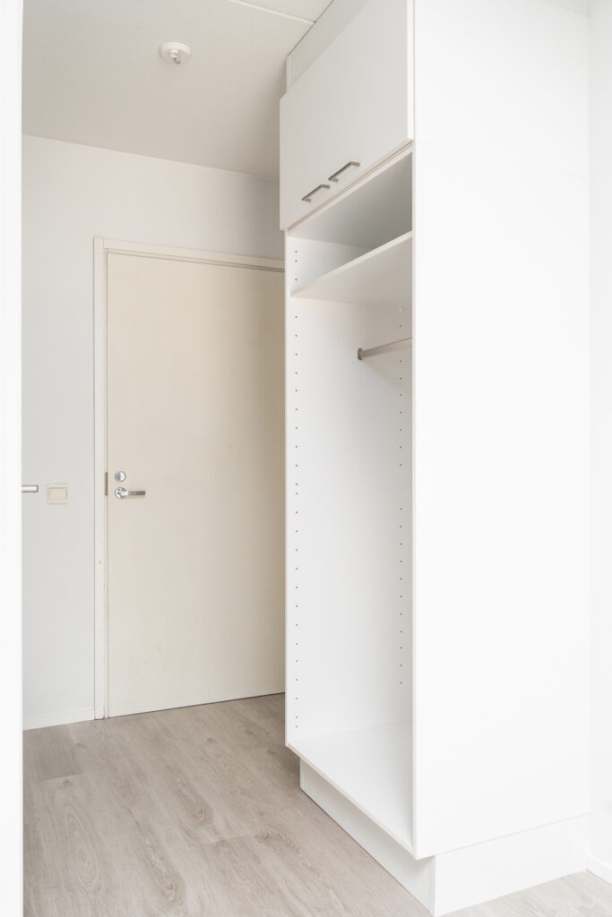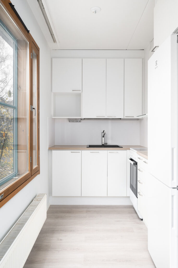 Hissillisen kerrostalon toisen kerroksen saunallinen asumisoikeuskaksio. Eteisestä käynti kylpyhuoneeseen. Kylpyhuone on remontoitu muutama vuosi sitten. Makuuhuoneessa koko huoneen leveydeltä kaappitilaa, josta käynti parvekkeelle. Keittokomero omassa rauhassaan oleskelutiloista.