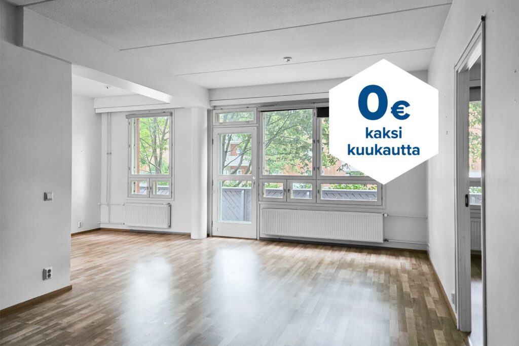 Tee sopimus nyt – saat kahden ensimmäisen kuukauden käyttövastikkeen hintaan 0 € ja vakuusmaksun 250 €. Edut ovat voimassa 15.4.2026 saakka ja koskevat vain uusia asiakkaita. Vesi- ja autopaikkamaksut normaalisti. Edellyttää 12 kuukauden asumista.