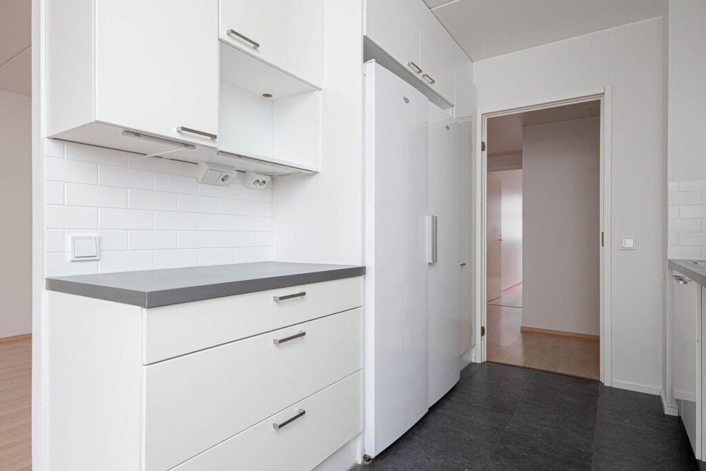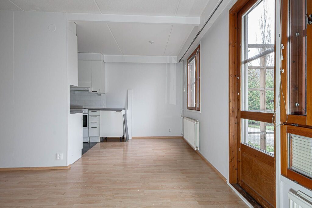 Asunnon valoisa keittiö ja ruokailutila yhdistyvät luontevasti olohuoneeseen, josta on käynti omalle parvekkeelle. Tilava eteinen johdattaa kahteen makuuhuoneeseen, joissa on mukavasti säilytystilaa. Asunnossa on erillinen wc sekä käytännöllinen kylpyhuone, jonka yhteydessä on oma sauna – täydellinen paikka rentoutua arjen keskellä.