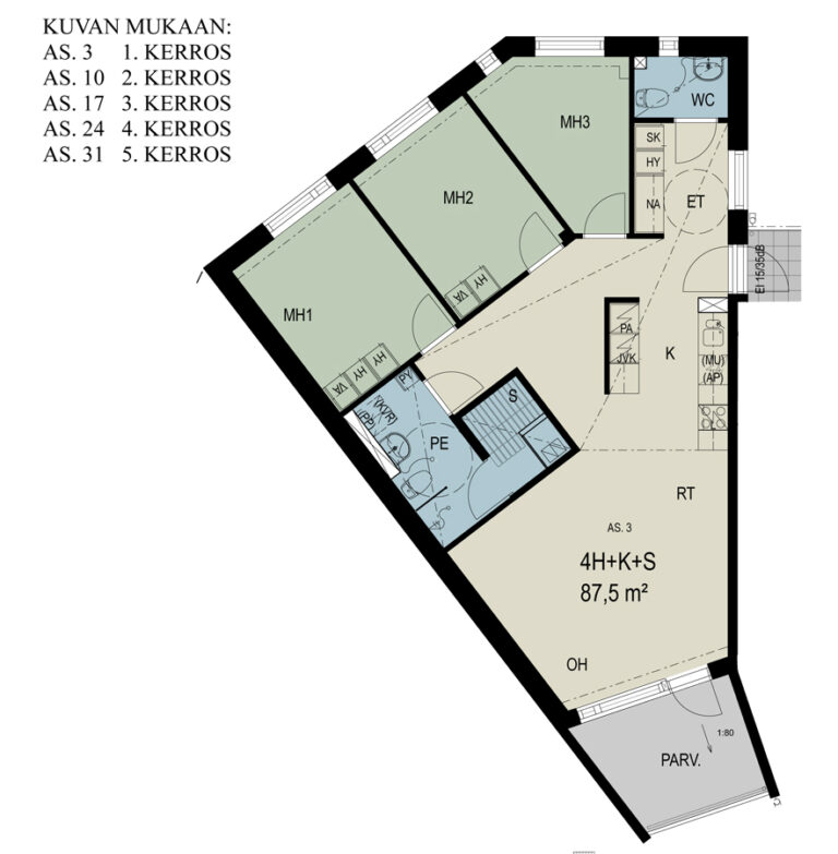 Vapaana neljännen (4/5) kerroksen koti, jossa tilaa riittää suuremmallekin perheelle. Asunnon ikkunat ovat kolmeen ilmansuuntaan ja pohjaratkaisu on persoonallinen. Asumismukavuutta tuo kaksi vessaa ja oma sauna, sekä kaakkoon suuntautuva parveke.
