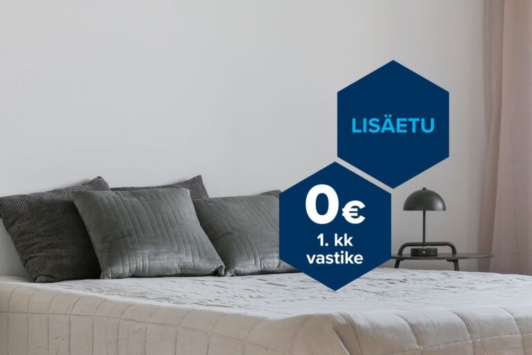 Tee sopimus nyt – saat ensimmäisen kuukauden käyttövastikkeen 0 €. Etu on uusille asukkaille ja koskee kaikkia muuttovalmiita ja vapaita ASO-asuntoja. Vesi- ja autopaikkamaksut veloitetaan normaalisti. Etu on voimassa 15.4.2026 mennessä tehtyihin sopimuksiin. Lue lisää kampanjaedusta.