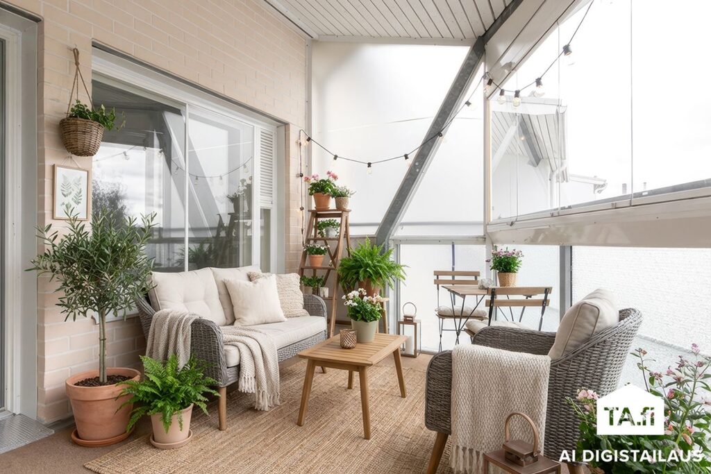 Länteen suuntautuva lasitettu parveke avautuu suojaisalle sisäpihalle ja toimii kesäisin mukavana lisätilana oleskeluun. Arjen sujuvuutta lisäävät erillinen kodinhoitohuone sekä erillinen wc.