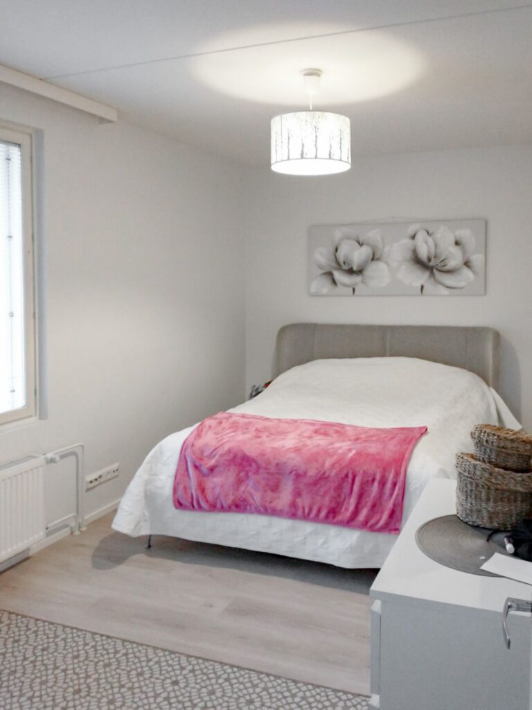 Toisen kerroksen tilava kolmio. Asunnossa on valoisat tilat ja ikkunat kolmeen ilmansuuntaan. Asuinmukavuutta lisää oma sauna ja erillinen wc sekä toisen makuuhuoneen yhteydessä oleva vaatehuone tuo mukavasti lisää säilytystilaa. Pysäköintipaikkamaksu 19,00€/kk