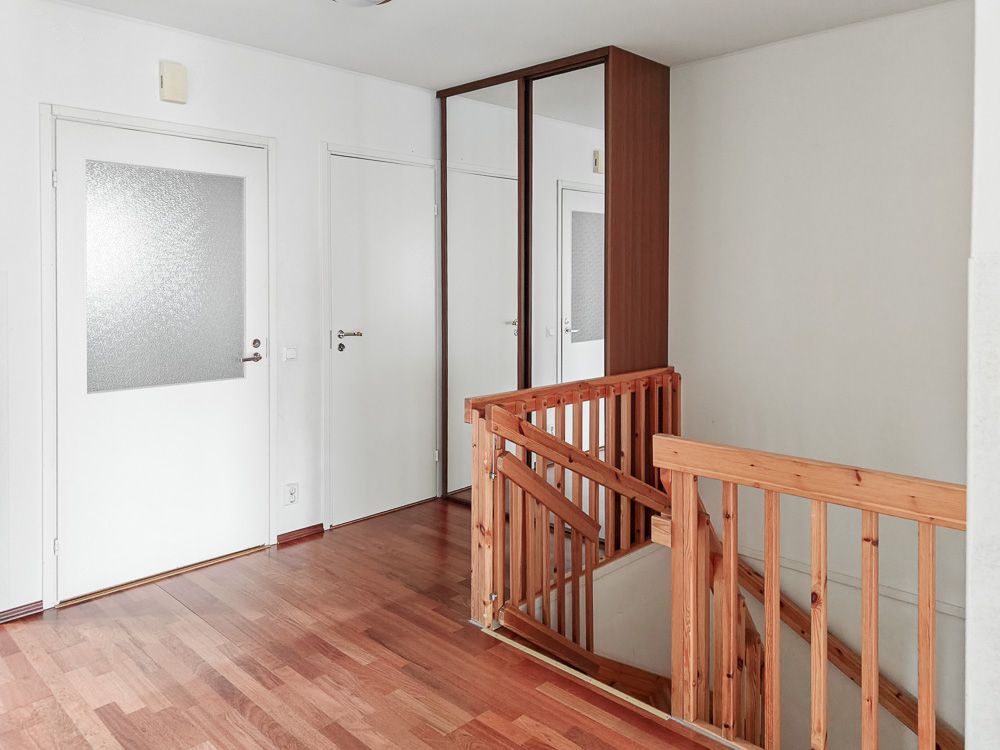4 huoneen rivitaloasunto kahdessa kerroksessa. Sisääntulokerroksessa keittiö, olohuone, erillinen wc ja yksi makuuhuone. Sisääntulon yhteydessä myös kylmä varasto omalla pihalla. Alakerrassa kaksi makuuhuonetta ja saunaosasto. Toisesta makuuhuoneesta käynti myös rauhalliselle takapihalle.