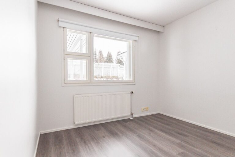 Vapaana yksikerroksinen tilava kolmio paritalosta rauhallisesta taloyhtiöstä. Ihastuttava koti palveluiden läheisyydestä. Keittiö ja olohuone ovat yhtä avaraa tilaa. Oma takapiha suuntaa länteen. Tässä asunnossa nautit oman saunan löylyistä silloin kun sinulle sopii. Kylmä varastotila sijaitsee asunnon edessä. Kohteen asuntojen kylpyhuoneet on remontoitu vuosina 2011-2012. Asunnolle kuuluu yksi autopaikka, joka sijaitsee asunnon edessä.