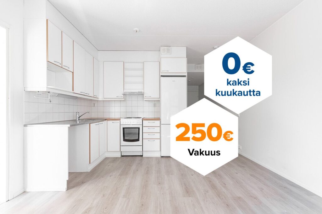 Tee sopimus nyt – saat kahden ensimmäisen kuukauden käyttövastikkeen hintaan 0 € ja vakuusmaksun 250 €. Edut ovat voimassa 15.4.2026 saakka ja koskevat vain uusia asiakkaita. Vesi- ja autopaikkamaksut normaalisti. Edellyttää 12 kuukauden asumista.