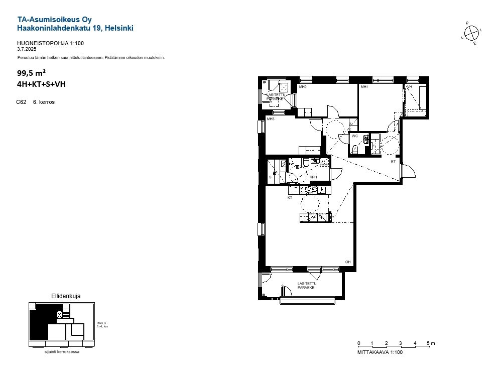 C 62 4h+kt+s 99,5 m² 6/9 Kerrostalo