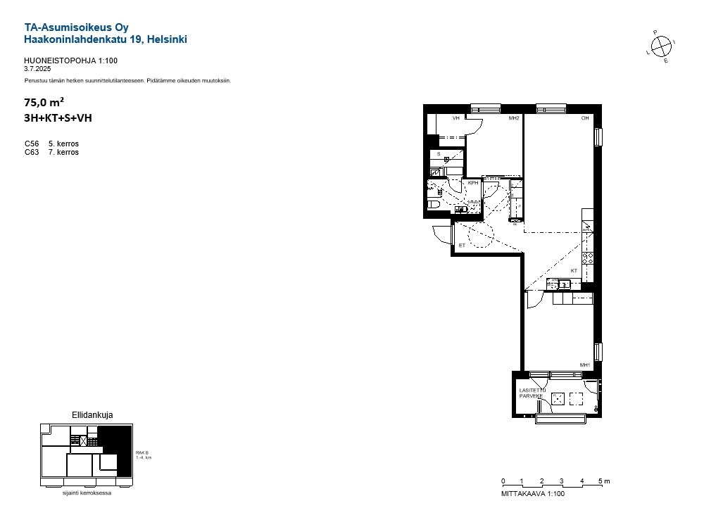 C 56 3h+kt+s 75,0 m² 5/9 Kerrostalo