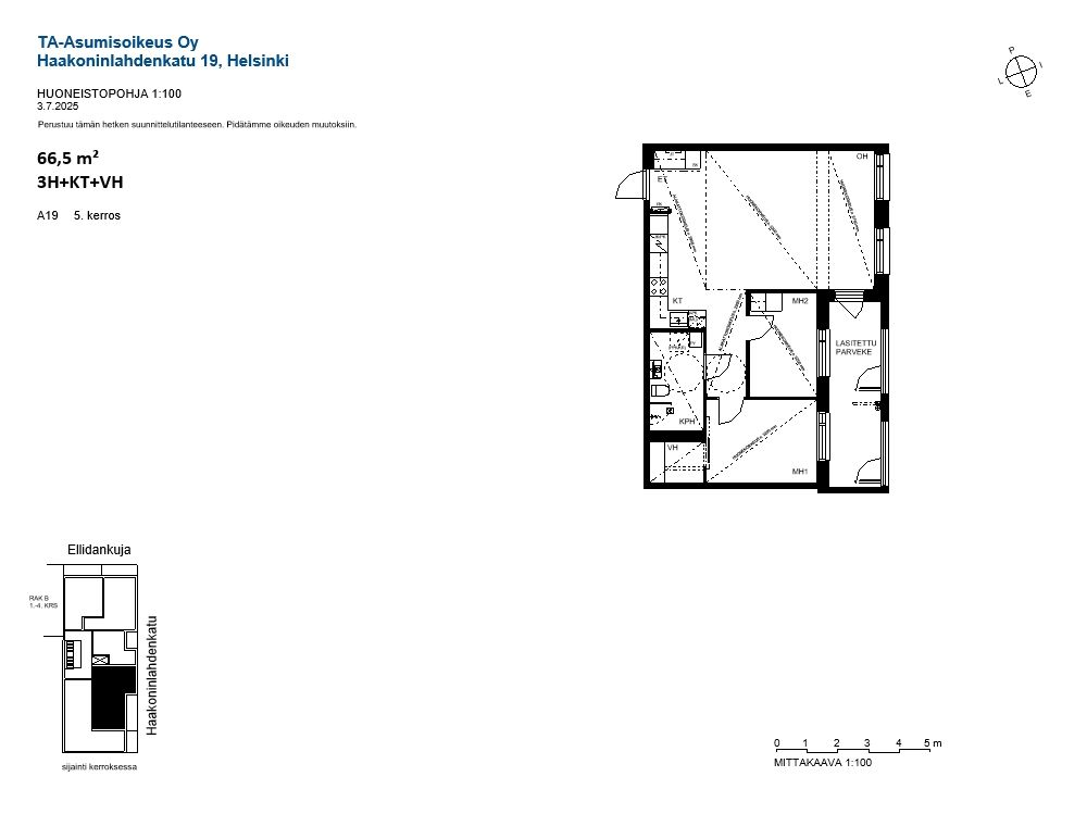 A 19 3h+kt 66,5 m² 5/9 Kerrostalo