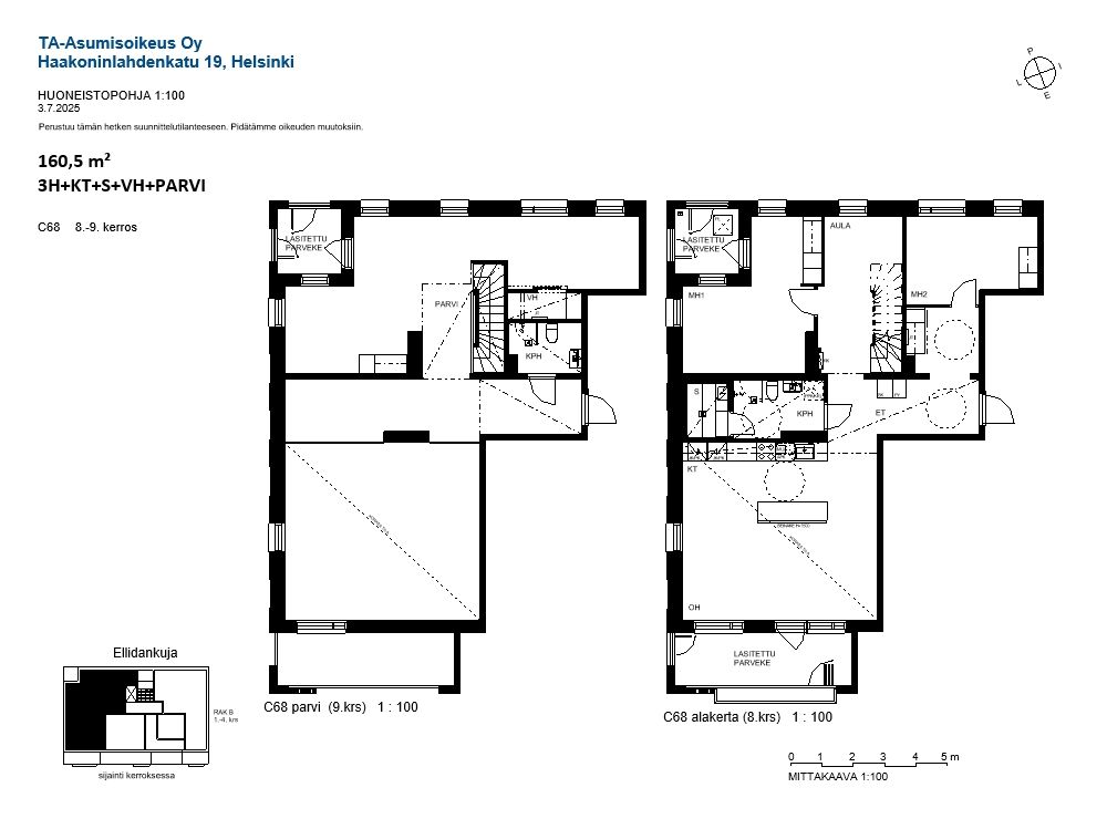 C 68 3h+kt+s+parvi 160,5 m² 8-9/9 Kerrostalo