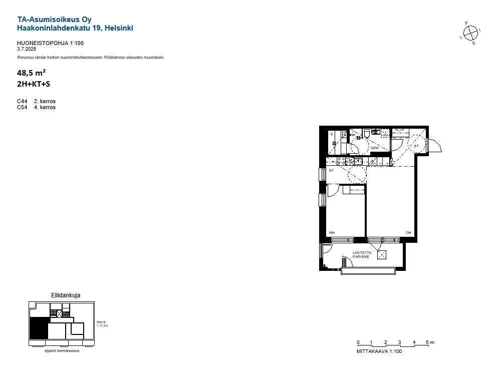 C 44 2h+kt+s 48,5 m² 2/9 Kerrostalo