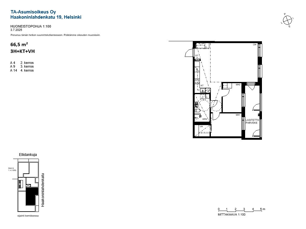 A 14 3h+kt 66,5 m² 4/9 Kerrostalo