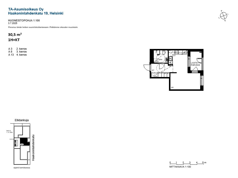 A 3 1h+kt 30,5 m² 2/9 Kerrostalo