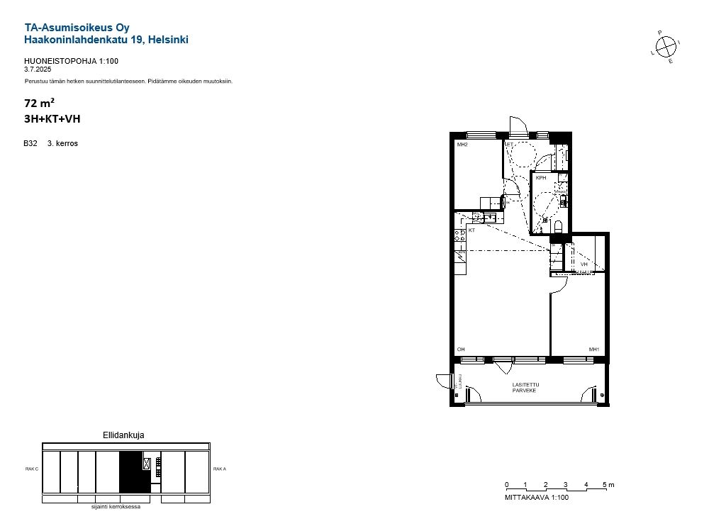 C 64 3h+kt+s 69,5 m² 7/9 Kerrostalo