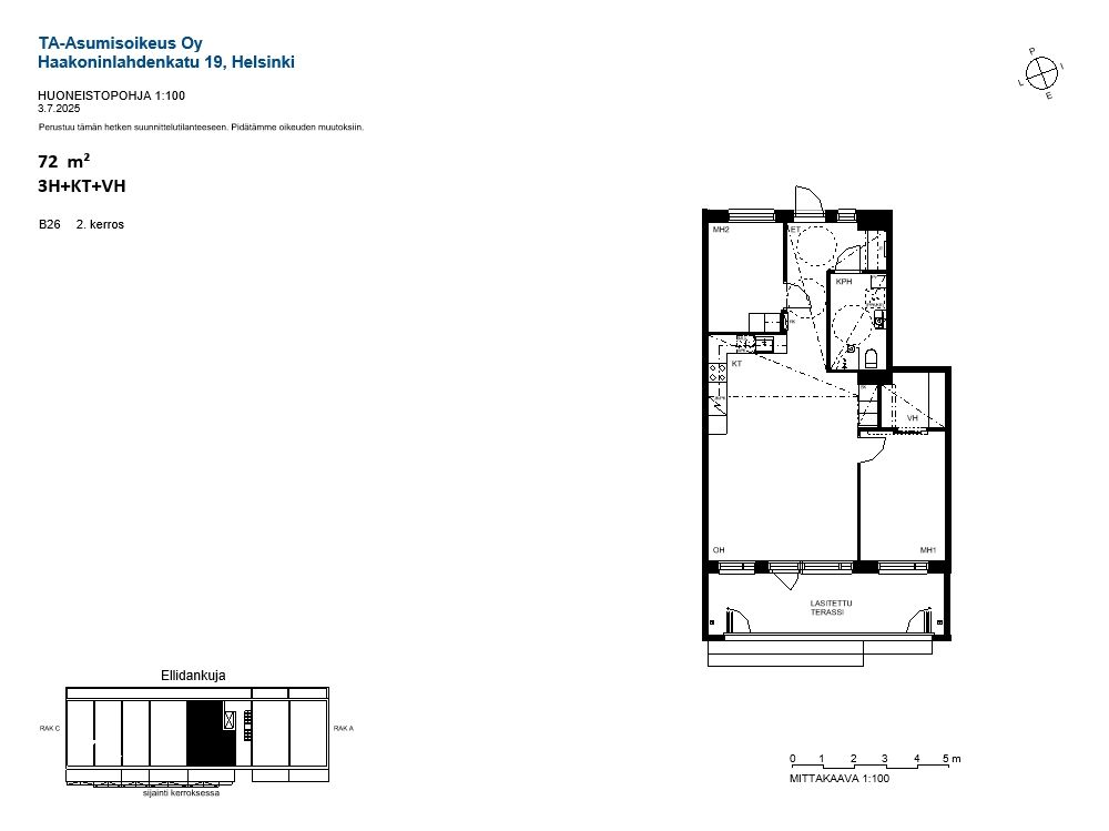 B 26 3h+kt 72,0 m² 2/9 Kerrostalo