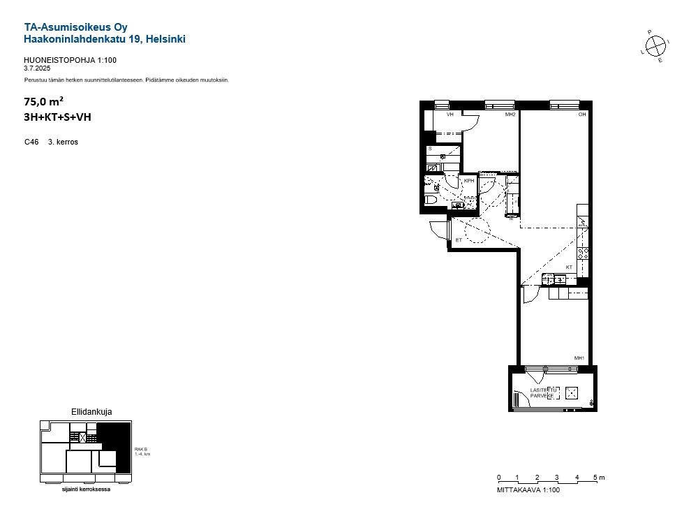 C 46 3h+kt+s 75,0 m² 3/9 Kerrostalo