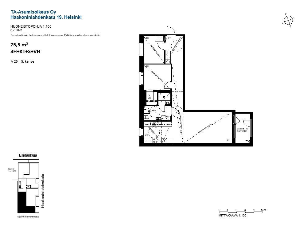 A 20 3h+kt+s 75,5 m² 5/9 Kerrostalo