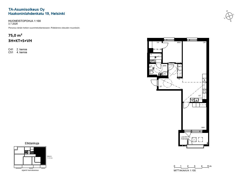 C 41 3h+kt+s 75,0 m² 2/9 Kerrostalo