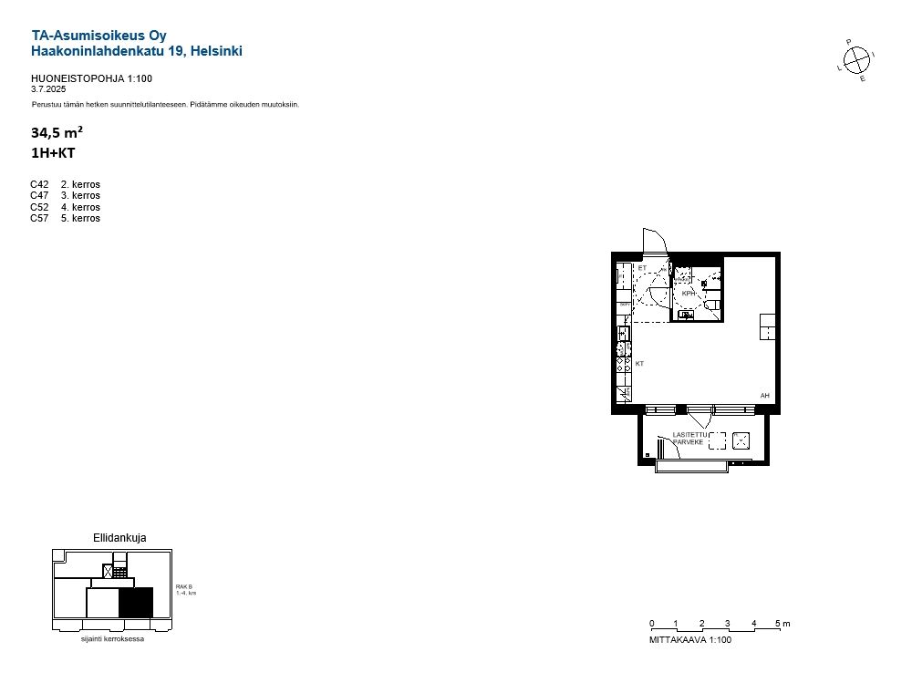C 42 1h+kt 34,5 m² 2/9 Kerrostalo